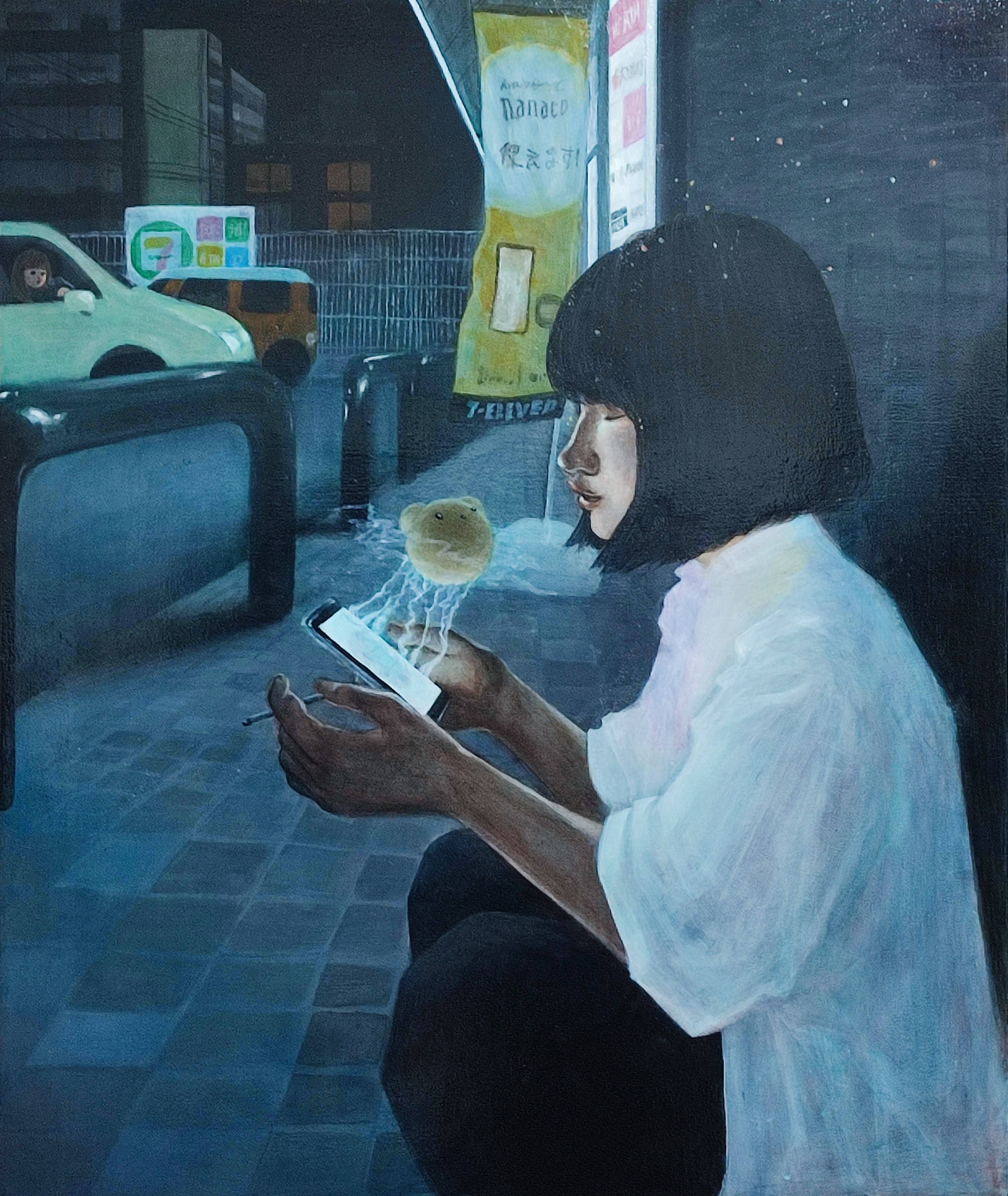 第31回けんしん美術展けんしん同友会賞『生存観測-1』人工光がある風景に興味があるのでコンビニを描いた。それぞれの個人が現実を生きているが、他人の現実をのぞき見れるわけじゃないからじつはこんな風かもねっていう絵。目撃者いるけどw