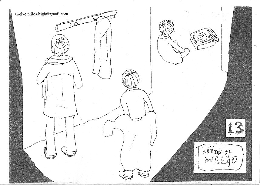 2004年から2006年まで『ぽれびより』というフリーペーパーに連載していたイラストです。途中からタイトルが変わって「地球外ミーゴ」と「銀杏スモーク」があります。それぞれどんな意図があったか覚えてません。。メンバーは自分以外大人の人たちだったのでいろいろとお世話になりました。当時不登校の10代だったので社会性ゼロ&なにがなんだかわからないけど絵を描き始めた頃なのでけっこー滅茶苦茶です。